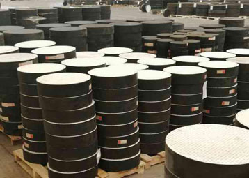 盆式橡膠支座是在一盆形的底座內(nèi)放置一橡膠塊,利用橡膠在三相受力狀態(tài)下具有流體的性質(zhì)這一特點來實現(xiàn)大的轉(zhuǎn)角,同時通過放置在中間支承鋼板上的聚四氟乙烯板與不銹鋼板之間相對運動時的低摩擦系數(shù)來實現(xiàn)梁的水平位移。盆式橡膠支座能滿足大的支座反力和大水平位移和大轉(zhuǎn)角的要求,適用于跨度大和支座反力大的橋梁。